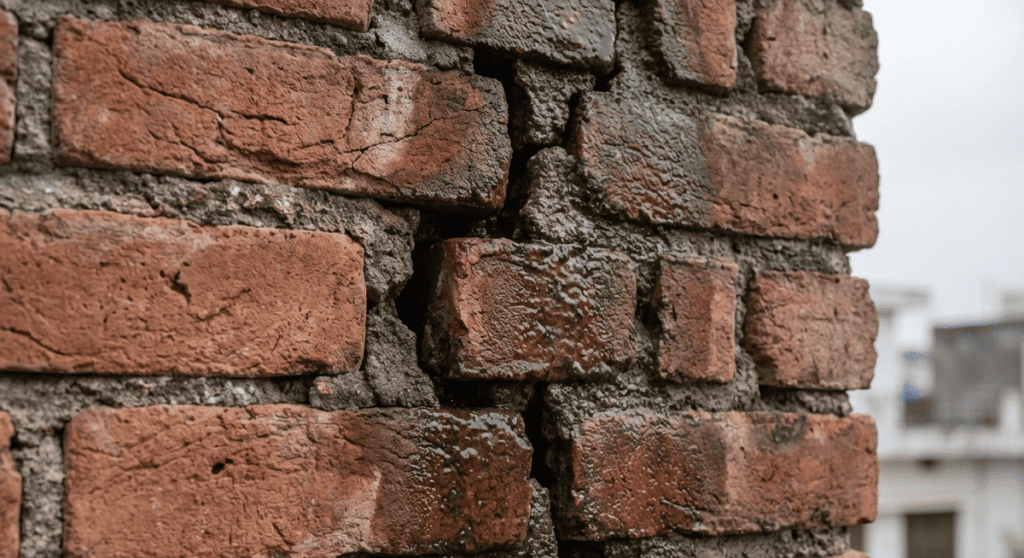 - Bad drainage around your home – If water collects near the base of your wall instead of flowing away, it will keep pushing through the brick. This is very common in Indian homes where the ground doesn’t slope away from the walls properly.